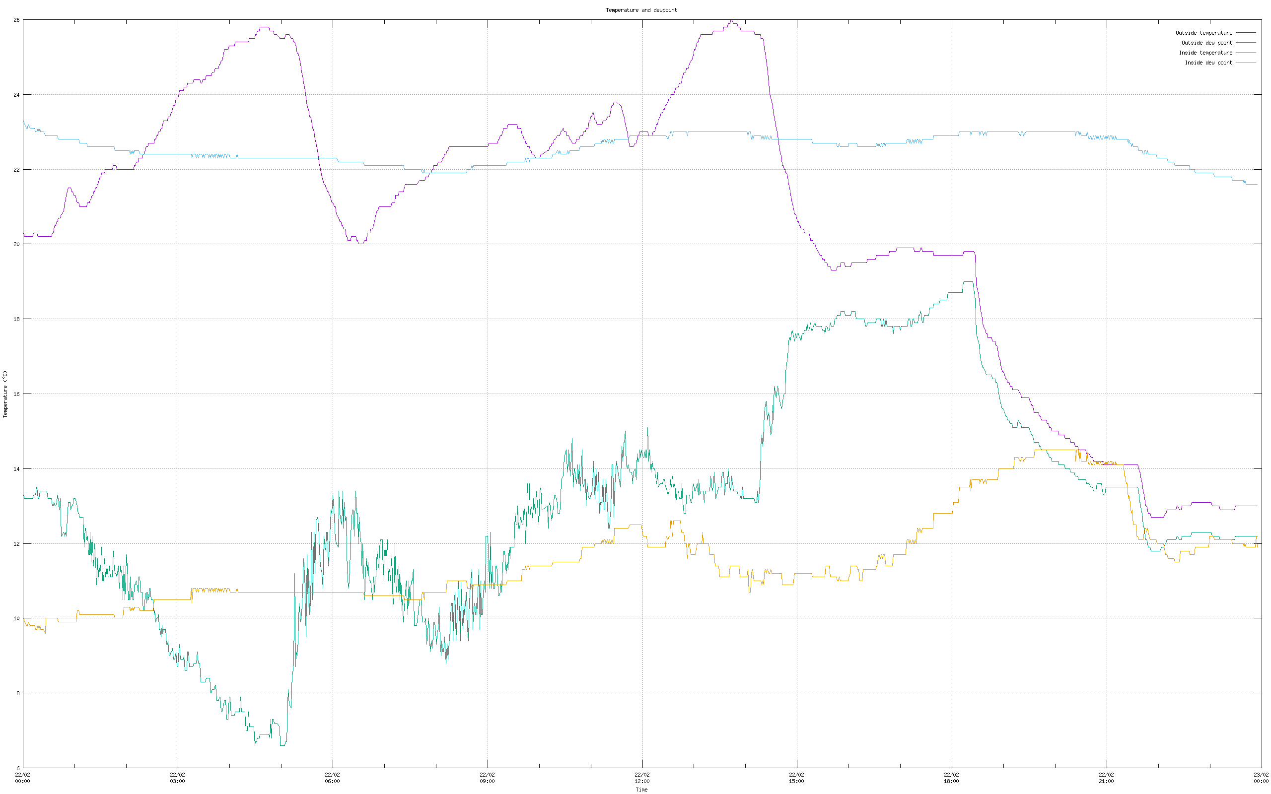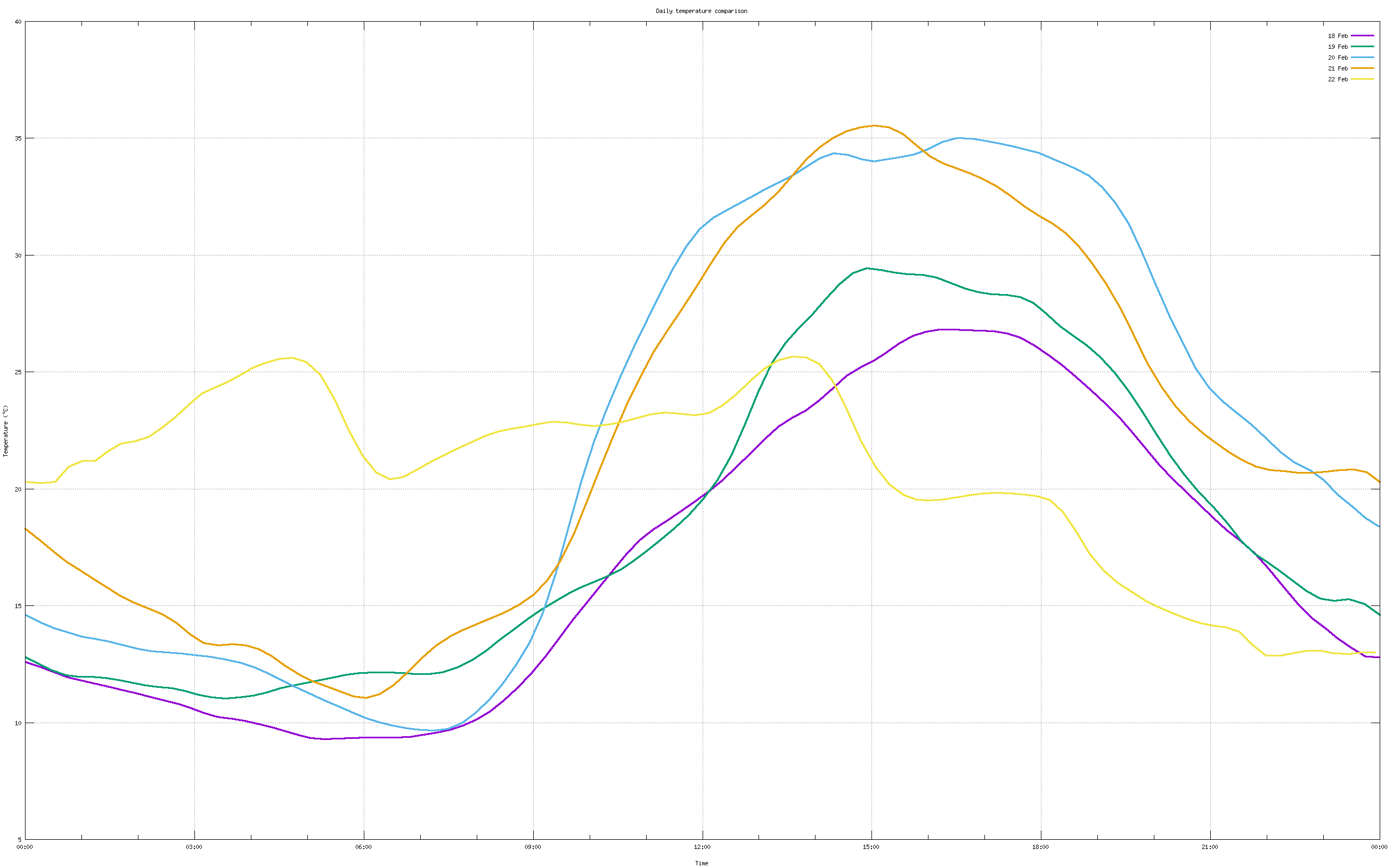And the temperature fluctuated throughout the day. It's particularly obvious from the 5 day plot. Until 10:00 or so it was higher than the previous 4 days, and from 14:00 on it was cooler: